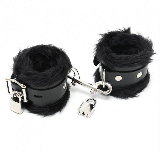 Esposas Cuero y Pelo Negro 7cm Candados