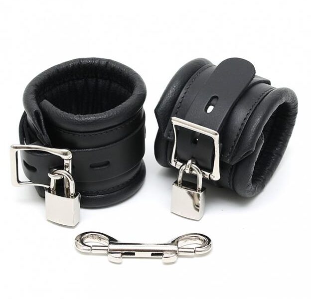 Vive experiencias diferentes con estas esposas de cuero.Son blandas por dentro y rellenas de espuma en el interior.Con los bordes suaves. Miden 7 cm de ancho y son ajustables por una hebilla metálica con 4 posiciones. Incluye doble gancho de seguridad y 2 candados.