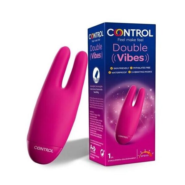 Con sus 2 extremidades disfrutarás del doble de place, de una intensidad graduable que puede ser utilizado bajo el agua. Control Double Vibes es un estimulador íntimo fabricado con plástico ABS y silicona hipoalergénica de máxima calidad.