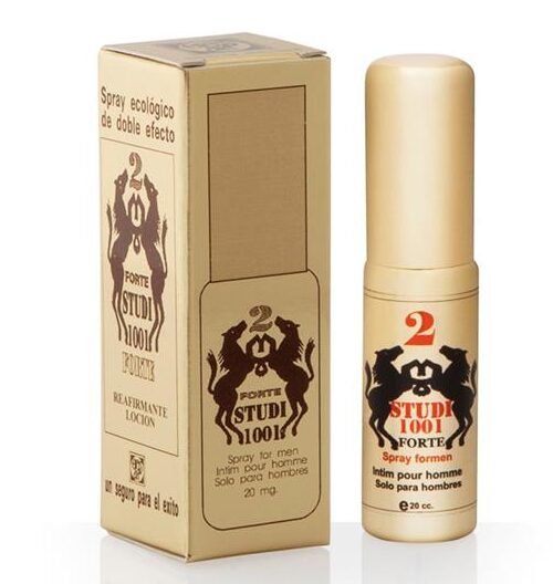 STUDI 1001 FORTE es un spray para hombres que sufren de eyaculación precoz. Aumenta la erección, consigue mayor dimensión y logra que tus relaciones sexuales sean más duraderas. El principio de este spray es el efecto relax sensitivo y una buena vaso dilatación para conseguir un mayor llenado, y conseguir así más turgencia y mejor apariencia con resultados muy gratificantes. Con «Studi forte» se consigue que el placer de la pareja, esté garantizado.